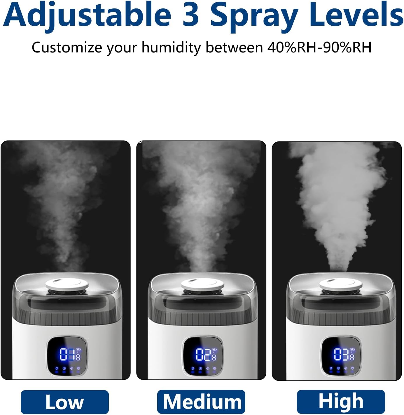 - Akeshan-561 humidifier has an external humidity sensor that can detect room humidity more accurately. You can customize humidity levels from 55%-95%, with the ability to adjust in 5% increments per touch. The constant humidity sensor can intelligently detect real-time humidity.